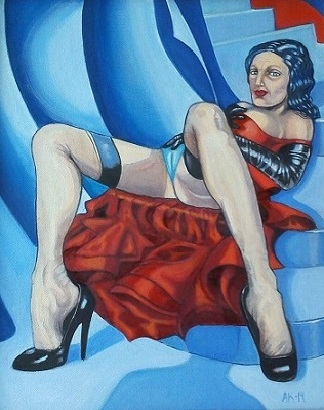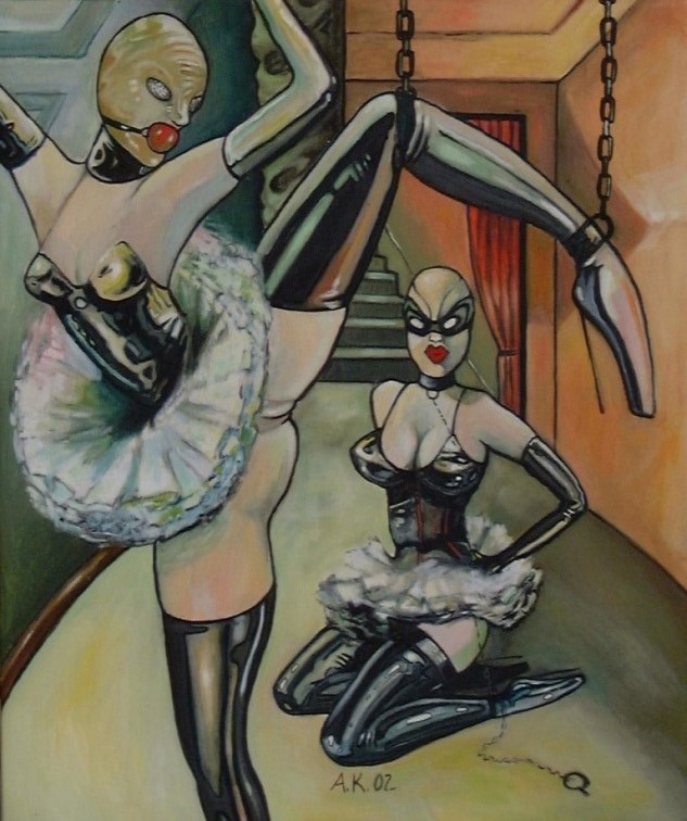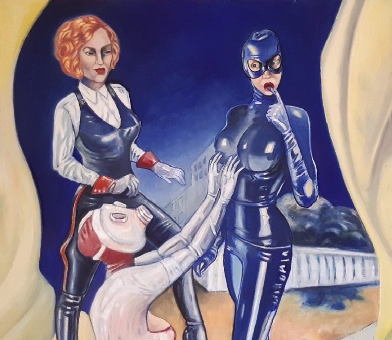 Gallery Rubber women 1993 45 x53 cm acrylic on wood Happy feet 1996 45 X 53 cm acrylic on wood Window display 2000 50 X 60 cm acrylic on canvas Nutcracker 2002 oil on canvas 50 X 60 cm Nylon friends 2003 50 X 60 cm oil on canvas Czernich, Lempicka and Schjerfbeck 2006 60 X 80 cm acrylic on canvas Melancholia 2 2012 35 X 45 cm oil on canvas Red dress 2014 33 X 41 cm oil on cardboard Freundin-nen 2019 39 x 48 cm oil on canvas Content in my bubble 2023 oil on canvas 33 X 49 cm